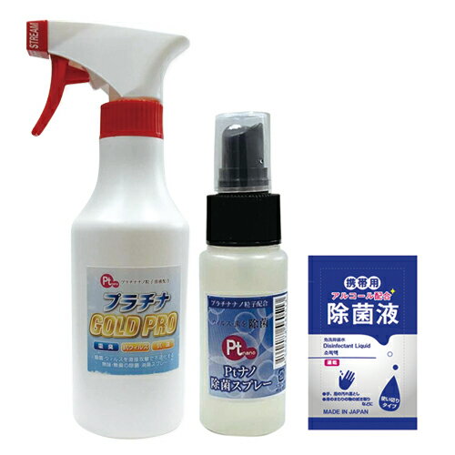 商品詳細 商品名 プラチナゴールドプロ(Platinum GOLD PRO) (PTnano pt nano プラチナナノ spray 吸臭 抗ウイルス) 内容量 約300mL 成分 白金、アスコルビン酸、クエン酸、精製水 商品説明 プラチナナノ粒子溶液配合 プラチナナノ粒子が菌・ウイルスを除菌・消臭します。
